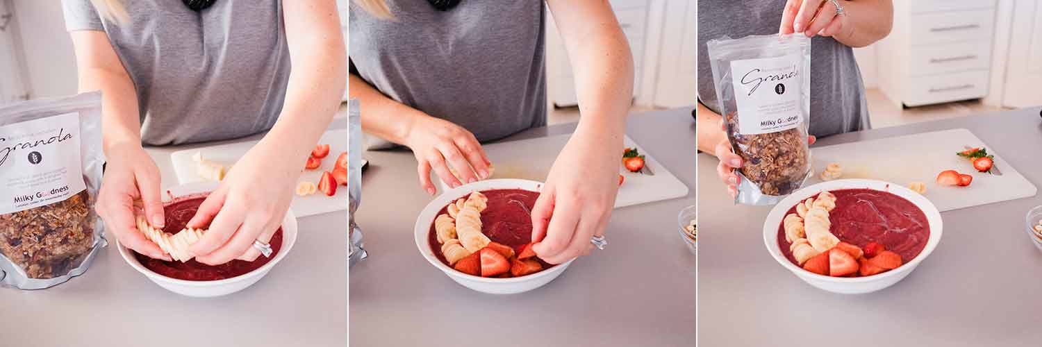 Set aside (preferably in the freezer) while you prepare the smoothie bowl toppings.
