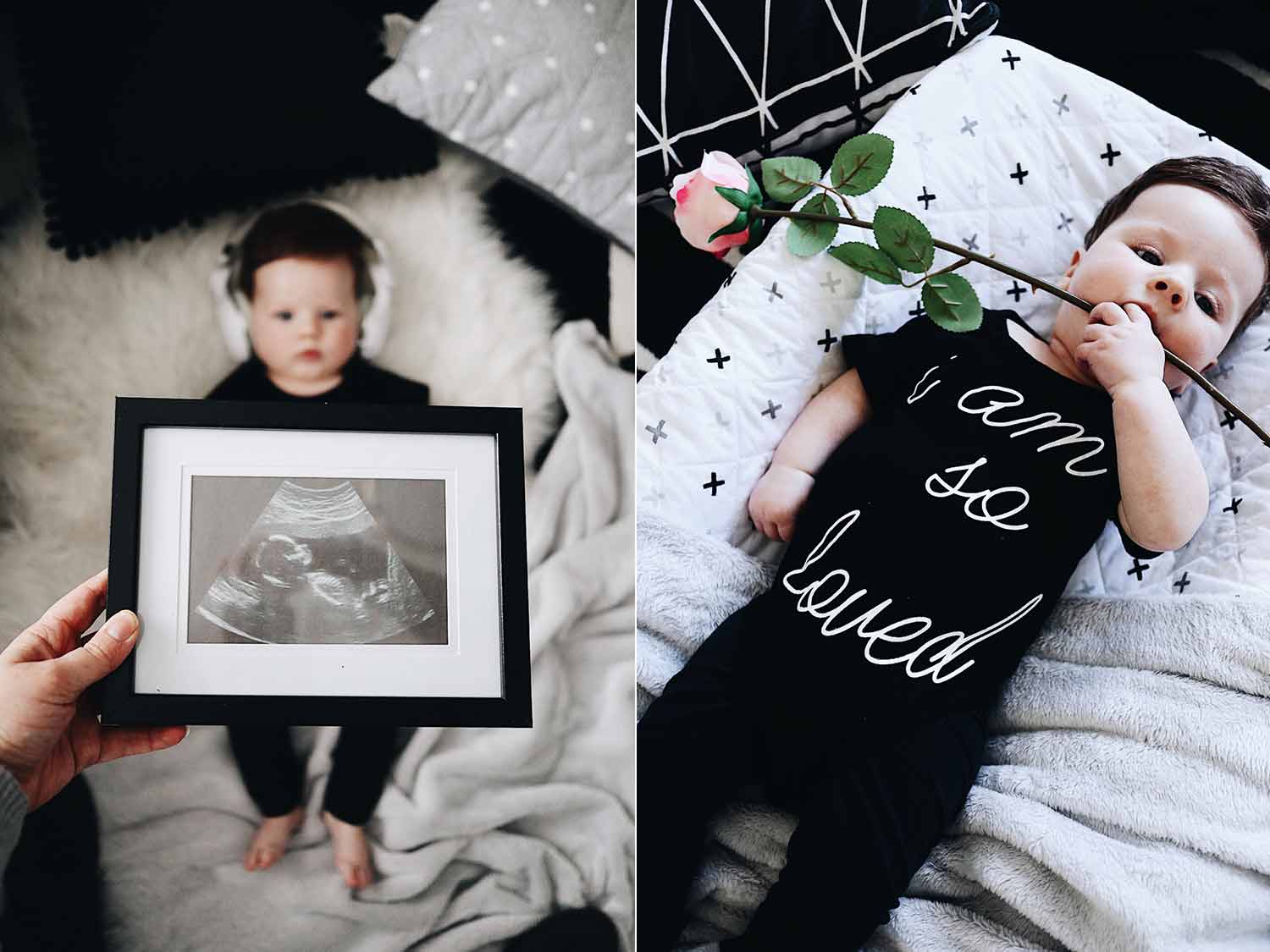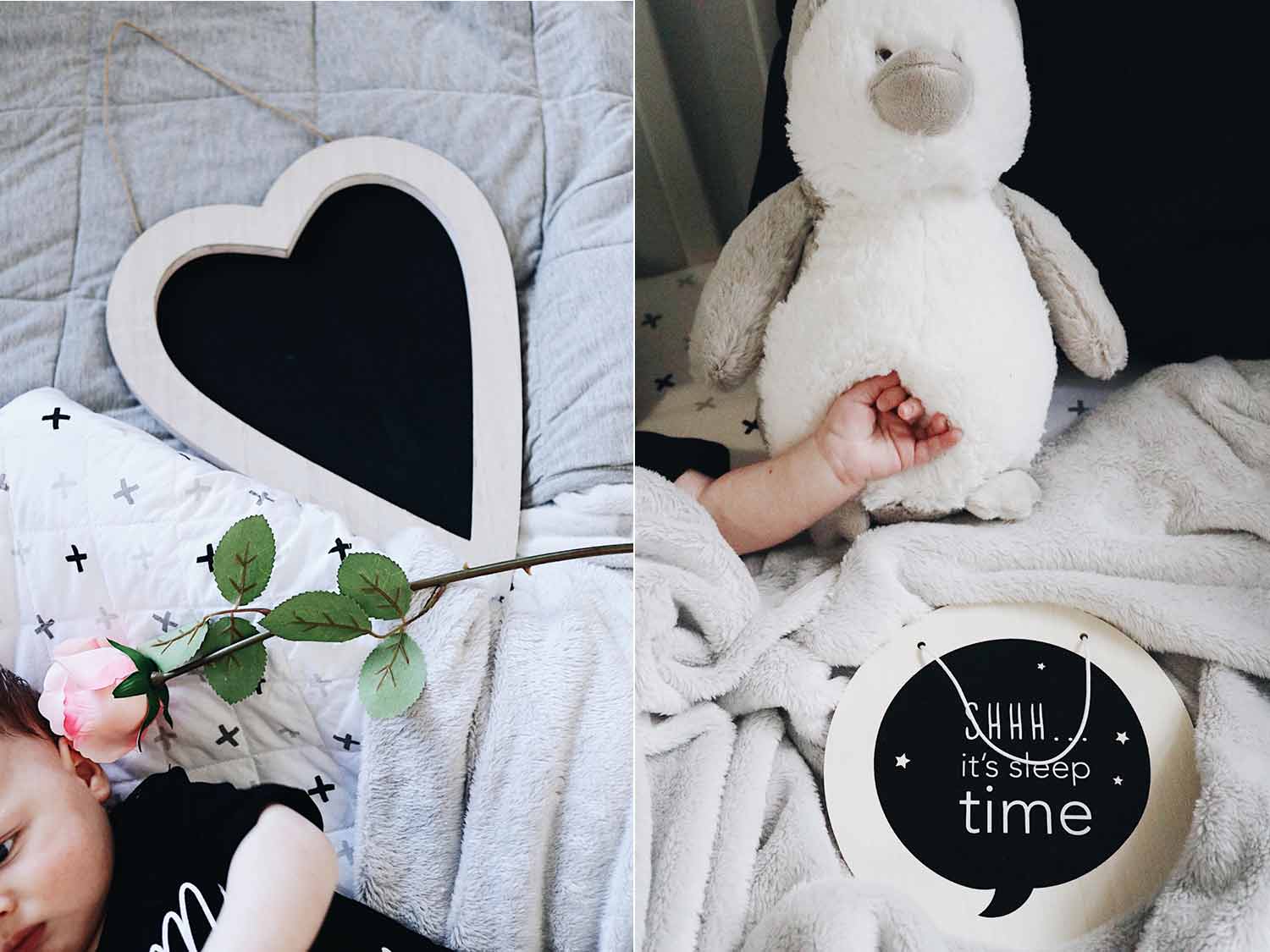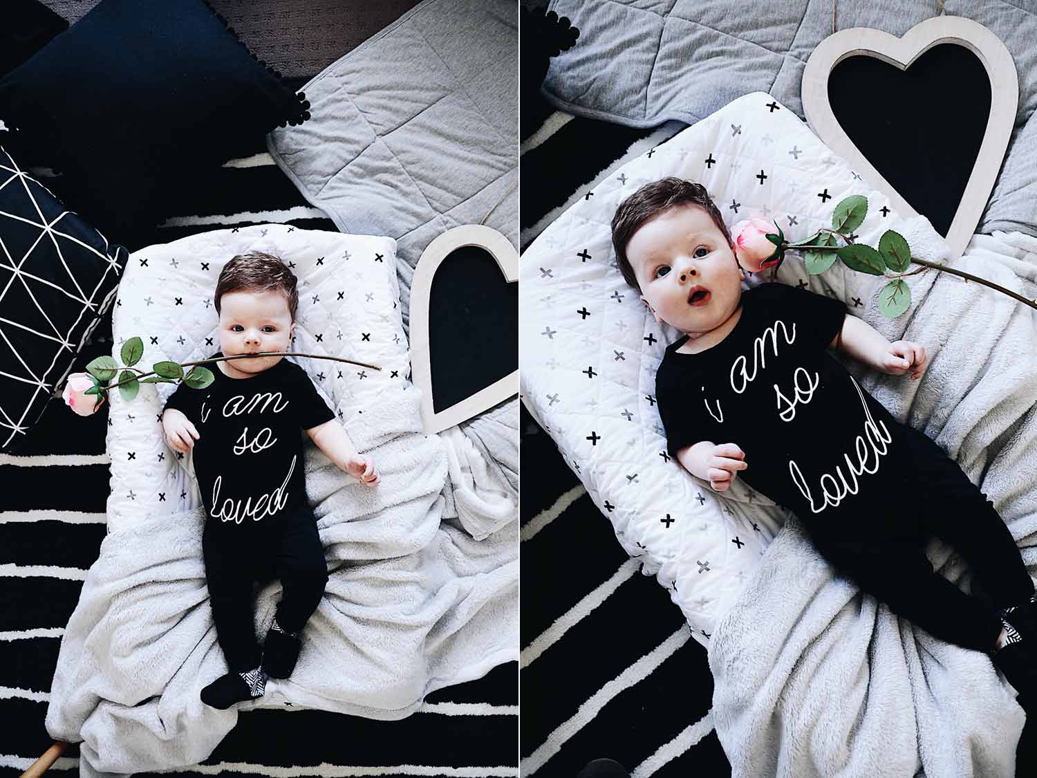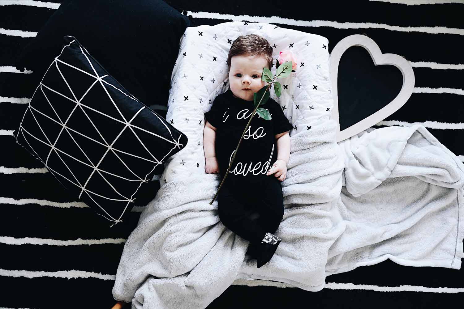 Another example is “You are so Loved” I used a rose and a chalkboard love heart to amplify the onesie’s message. You would be surprised with how many props you have just laying around your house. Especially when it comes to babies. A lot of their toys, or cuddly toys, nursery decor can be doubled up as photography props. All you need is a bit of creativity, have fun with it!