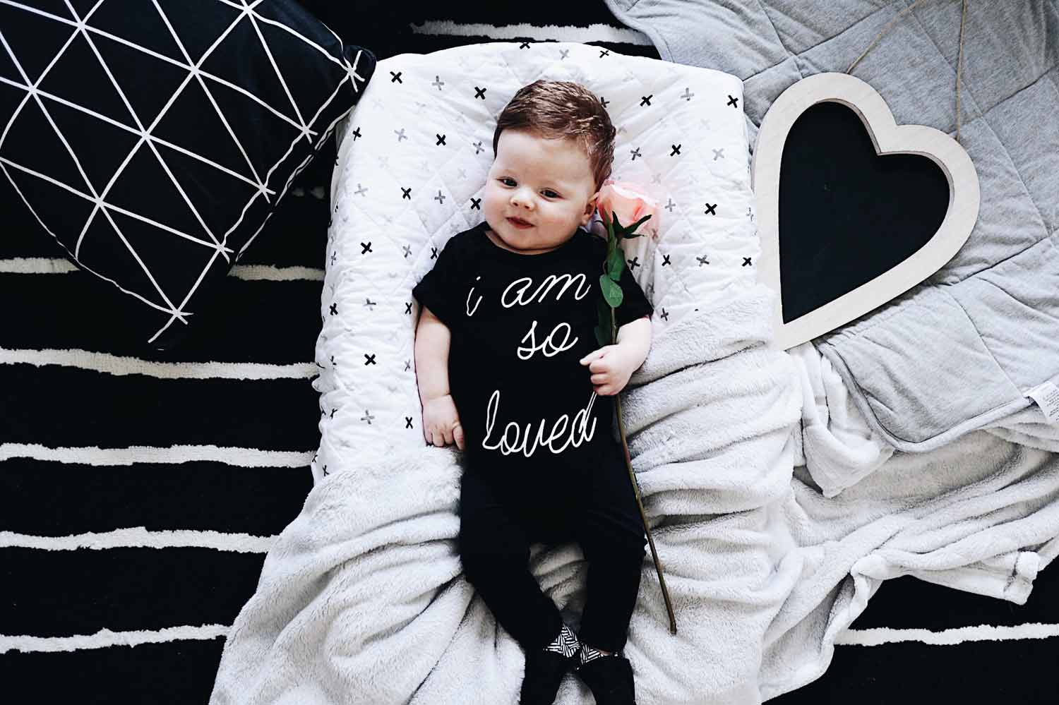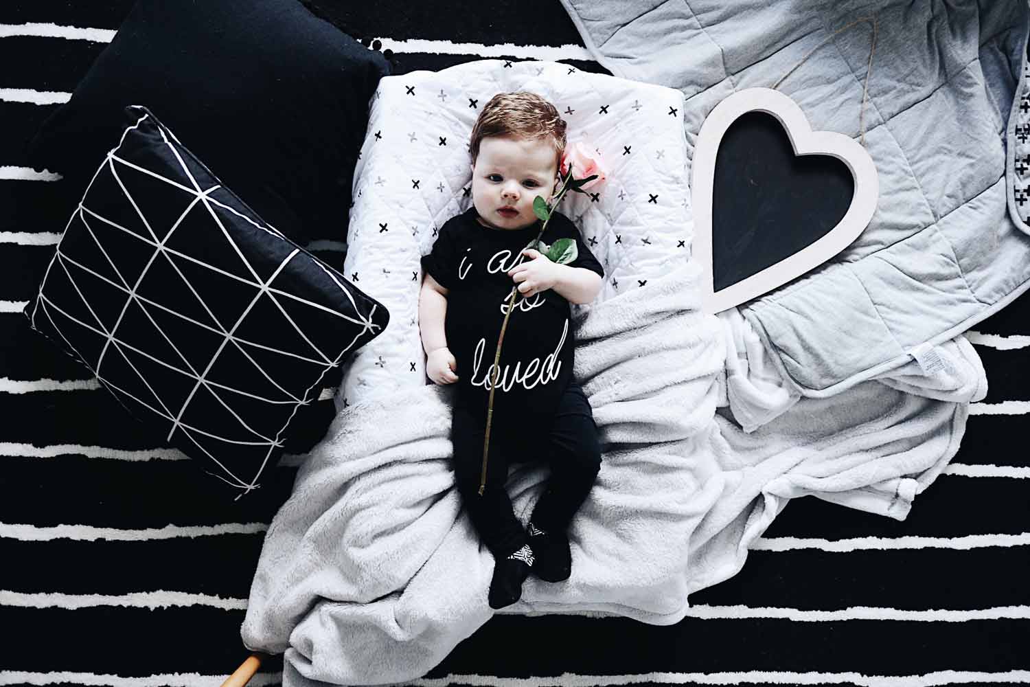 Another example is “You are so Loved” I used a rose and a chalkboard love heart to amplify the onesie’s message. You would be surprised with how many props you have just laying around your house. Especially when it comes to babies. A lot of their toys, or cuddly toys, nursery decor can be doubled up as photography props. All you need is a bit of creativity, have fun with it!