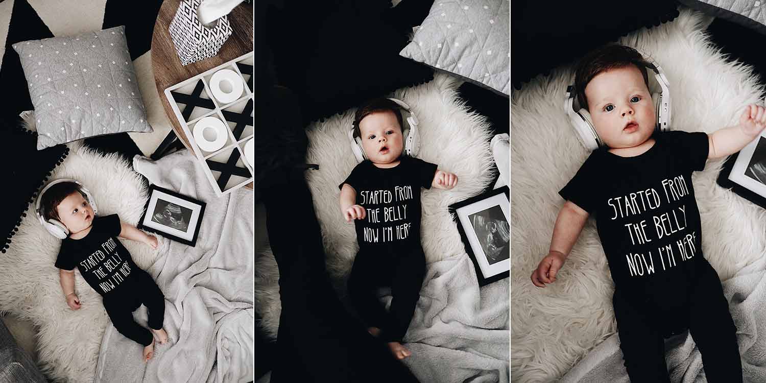 Started from the Belly Now I’m Here” Obvs this is a play on the lyrics from Drakes song right, so I got some headphones to use as a prop, because it’s relevant to the theme. I also used an ultrasound picture of J as a prop because that was literally him “in the belly” I think you get where I’m going with this.